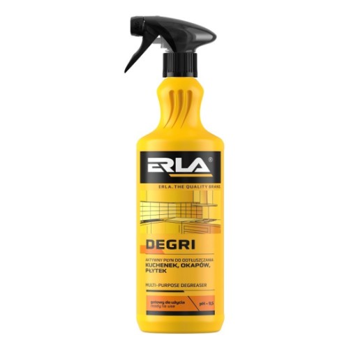 ERLA DEGRIi on professionaalne. kasutusvalmis universaalne köögirasva eemaldusvahend igapäevaseks kasutamiseks. Tänu toimeainetele lahustab rasvu. mistõttu aitab neid tõhusalt ja lihtsalt eemaldada ning samas on see puhastatud pindadele ohutu. Meeldiva sidruniaroomiga. Eemaldab tõrksa mustuse kiiresti ja tõhusalt. Kasutuskohad: kubud. lauad. seinad. plaadid. mööbel. toitlustus- ja köögitehnika. sh induktsioon-. elektri- ja gaasipliidid jne. Lisaks kaitseb aine pindasid rooste eest. Erla DEGRI rasvaeemaldusvahend on mõeldud eelkõige igapäevaseks professionaalseks kasutamiseks. kuid seda saab kasutada ka kodus.
