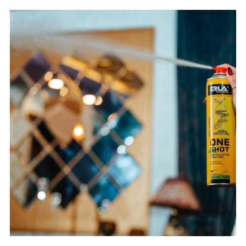 ONE SHOT - neutraliseerija ja õhuvärskendaja ühes. Kiire ja tõhus. võimaldab neutraliseerida ebameeldivad lõhnad. See ei varja. vaid kõrvaldab halva lõhna osakesed. Tuleb suurepäraselt toime uriini. põletuse. sigaretisuitsu. mustuse või higi ebameeldiva lõhnaga. Spetsiaalne aplikaator muudab toote kasutamise ideaalseks suurtes ruumides. nt spordisaalid. hotellid. konverentsiruumid. kauplused. koridorid. tualetid. Eeterlike õlide rikkad lõhnakompositsioonid tagavad intensiivse ja loomuliku lõhna.
