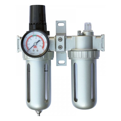 Ökonoomne ja koheselt kasutamiseks valmis lahendus õhutrassist niiskuse eemaldamiseks. õhusurve reguleerimiseks (0-8 bar) ja õhu-tööriistade õlitamiseks. 1/2” sisendiga. poolautomaatse tühjendusklapiga. max sisendrõhk 10 bar. õhu läbivool 1150 l/min@5bar. Filtreerib kuni 40 µm (0.04 mm) suuruseid mustuse osakesi. õlianum 110 ml. Töötemperatuur -10°C kuni 60°C. Komplektis seinakinnitus ja manomeeter.