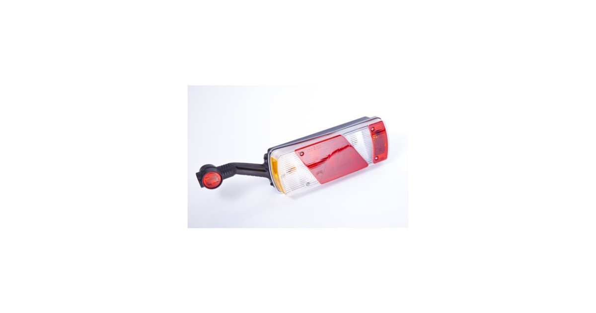 Haagise tagatuli ECOPOINT 2. sarvtulega. Välissegment valge (KÖGEL jt). 24 V elektrisüsteemiga haagistele. E-markeeritud. Laius (tuleosa) 350 mm. kõrgus 135 mm. paksus 82 mm. kinnituspoltide vahe 152 mm. Pirnid 1 x PY21W. 3 x P21W ja 2 x R10W. Sobib 7-pin bajonett ASS2 haagisepistik 999174760.