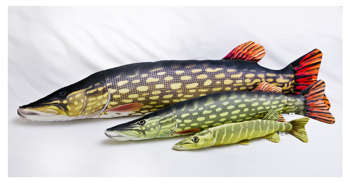 Väga loomutruu kalakujuline pehme padi. Materjal: Polüester. Haug. Pikkus: 80 cm.