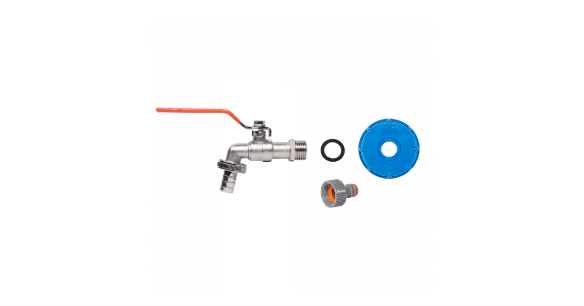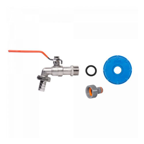 Komplekti kuulub:- Sinine IBC adapter S60x6, sisekeermega ½"- Kastmiskraan väliskeermega ½" ning väljalaskeava juures väliskeermega ¾"- Kraaniliitmik sisekeermega ¾" ning kiirliitmiku ühendusega- Kraaniliitmik sisekeermega ¾" ning voolikuühendusega ½" (12,5mm)- Kummitihend