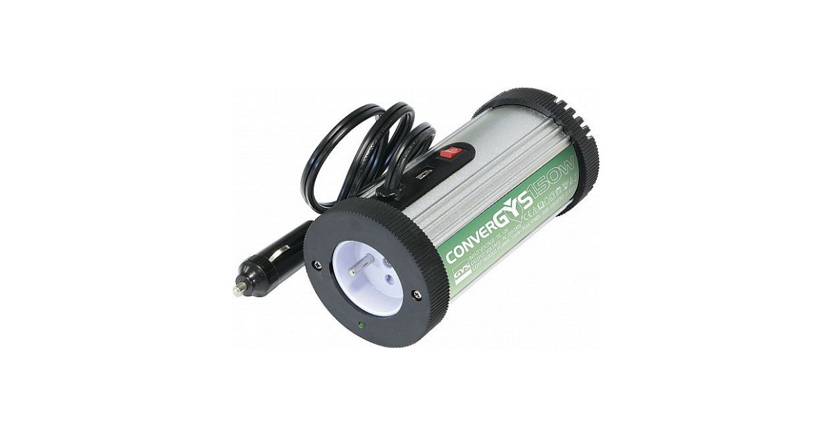 Tõhus ja kompaktne inverter firmalt GYS. ConverGys 150. Sobib tarbijatele kuni 150 W (telefon. laptop. tahvelarvuti jne). Tänu USB pesale (5 V) saab laadida ka USB juhtme abil. Inverteri saab ühendada auto sigareti süütaja pesasse. Termo ülekuumenemise kaitsega. Lühisekaitsega. Ala- ja ülevoolu kaitsega. Tänu silindrilisele kujule saab inverterit autos hoiustada näiteks uksetaskute pudelihoidjates.