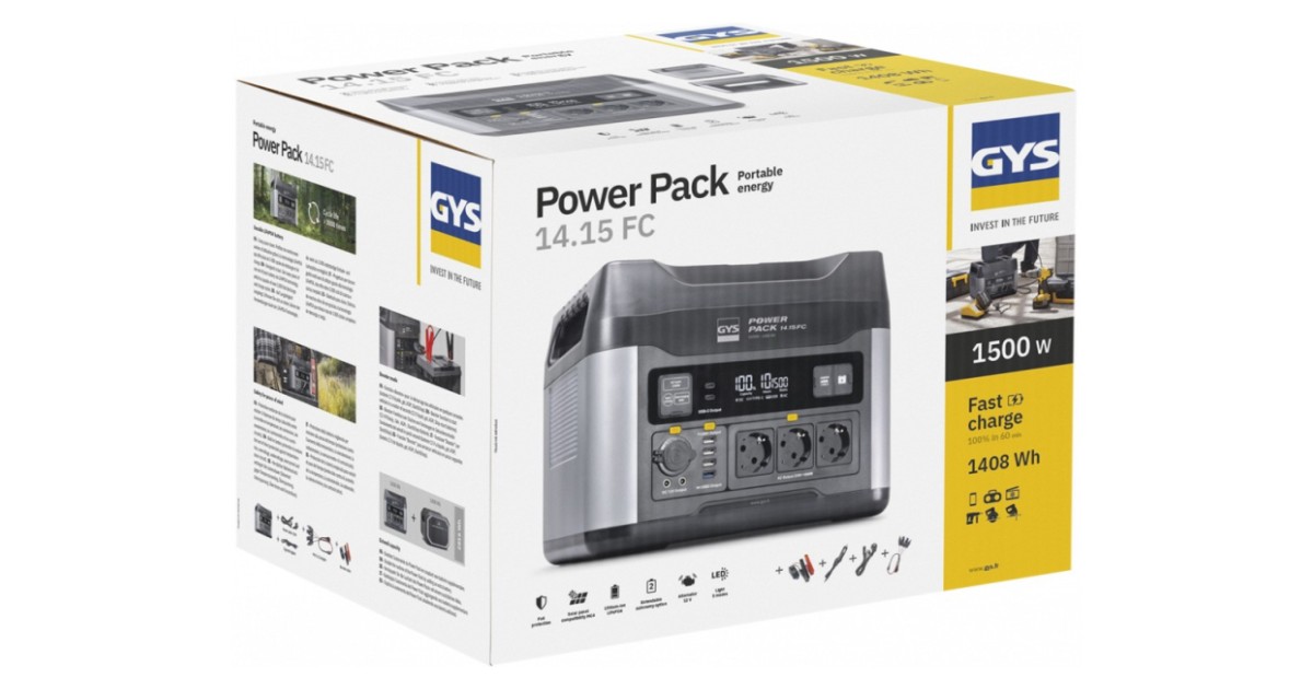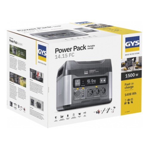 POWER PACK 14.15 Fast Charge on kaasaskantav elektripank. mis ühendab endas liitium-ioonaku (LiFePO4) ja puhta siinuslaine (PSW) inverteri. et varustada või laadida kõikvõimalikke elektroonilisi seadmeid (1500 W). Väljastab nii 12 V alalisvoolu kui ka 230 V vahelduvvoolu. Ülikiire laadimisvõime (max 1 tund) tähendab. et see on energiaallikas. mis on peaaegu hetkega kättesaadav. ning selle suur energiasalvestusmaht tagab vajaliku tööaja. et hoida enamik elektriseadmeid laetud või töös igasugustes olukordades.