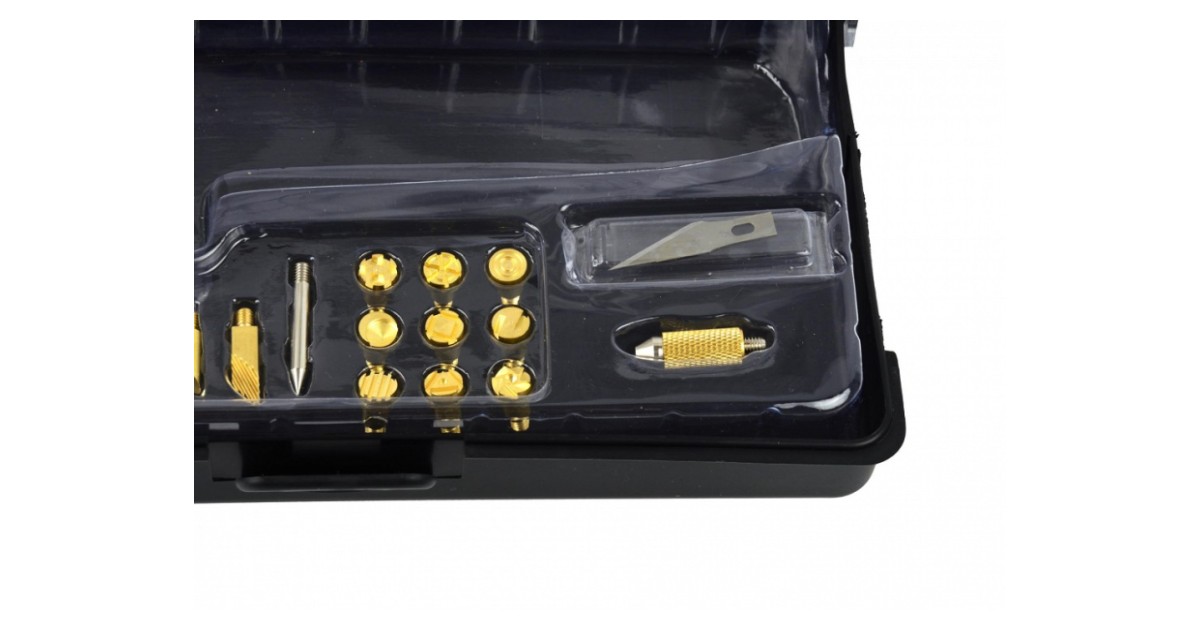 Komplektis: jootekolb/puidupõleti, kolvialus koos põleti kinnitusnäpitsatega, 22 erinevat otsikut. Võimsus: 30W. Töötemperatuur kuni 275°C.