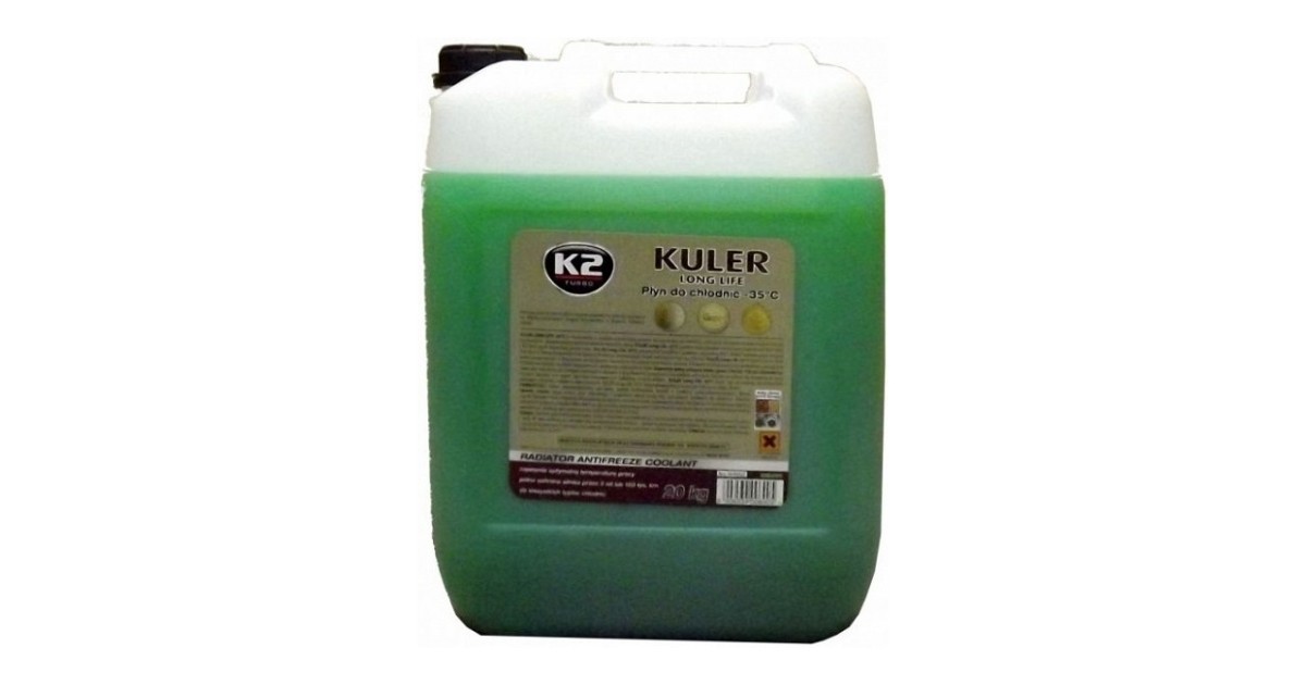 K2 KULER kontsentraat on kaasaegne ja universaalne jahutusvedeliku kontsentraat. mida iseloomustavad väga kõrged jõudlusparameetrid. Spetsiaalselt välja töötatud valem kaitseb mootorit suvel ülekuumenemise ja talvel külmumise eest. Suurepärane karboksüülhapetest koosnev inhibiitorpakett. millele on lisatud spetsiaalseid korrosiooniinhibiitoreid ja vahutamisvastaseid aineid. kaitseb mootorit. Tagab mootori täieliku kaitse 5 aastaks või 250 000 km. kilomeetrit isegi siis. kui seda on segatud muude pikema elueaga kaubamärgiga vedelikega. olenemata värvist. K2 KULER-i saab kasutada igat tüüpi radiaatorites. eriti alumiiniumradiaatorites. ja segada teiste võrdselt kvaliteetsete vedelikega. olenemata värvist. Patenteeritud. tehnoloogiliselt täiustatud vedeliku koostis vastab rangetele Ameerika standarditele ASTM D 3306 ja ASTM D 2570. Kõrgeimat kvaliteeti kinnitavad Õhujõudude Tehnoloogiainstituudi testid vastavalt PN-C-40007 standardile.