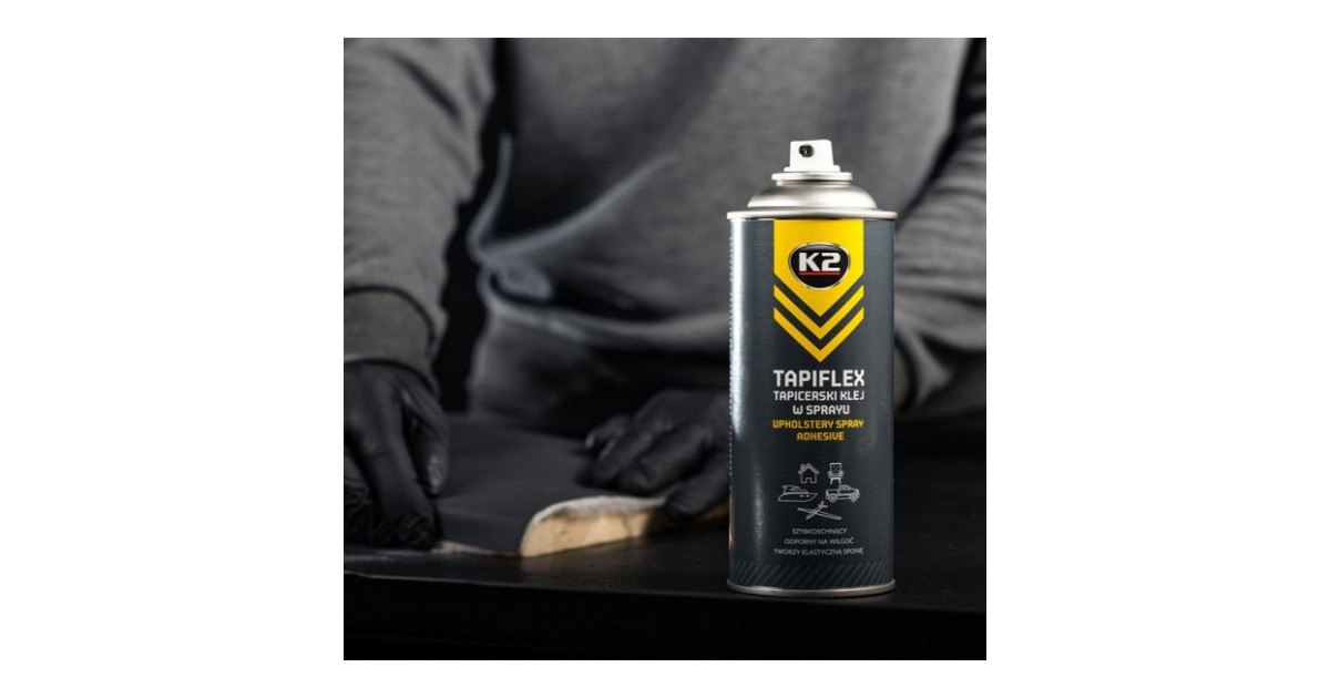 K2 TAPIFLEX on professionaalne. tugevalt siduv pihustatav polstriliim. Välja töötatud kvaliteetse tooraine baasil. Liimitud pinnad liimivad erakordse kiiruse ja suure nakketugevusega. Sellel on kõrge efektiivsus ja see on täielikult niiskuskindel. Tagab tugeva ja väga elastse ühenduse. mis aja jooksul ei lagune. Sobib suurepäraselt: kangaste. käsnade. plastide. metallide. klaasi. polstri. paberi. fooliumi. puidu. papi. naha. polüstüreeni. vinüüli. kummi ja muude sarnaste materjalide ühendamiseks. Sellel on lai valik rakendusi. K2 TAPIFLEX toimib 100% katte liimina. See liimib raskusteta: auto polstri. kunstnahast või -kangast polster. helikindlad matid. Seda kasutatakse istmete parandamisel või pehme mööbli renoveerimisel. Sellega saab edukalt kinnitada põrandale uksematte ja vaipu. helikindlaid seinu akustilise vahuga. Ühest palloonist jätkub umbes 6 ruutmeetri liimimiseks. K2 TAPIFLEX pihustusliim on mugav kasutada. Sellel on reguleeritav pihustusnurgaga reguleeritav joa otsik. Tagab pinnale lihtsa ja ühtlase liimipihustuse. Ettevalmistust pole vaja. Sobib koheseks kasutamiseks.