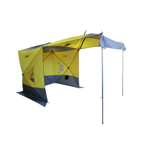 Kas plaanite külmal aastaajal puhkust vabas õhus või kalaretke? Talvetelk Storm AT on suurepärane võimalus mõnusaks õues puhkamiseks. See talvetelk talub tugevaid tuuleiile tänu kvaliteetsele konstruktsioonile ja materjalidele. Akendega talvetelk on valmistatud tugevast sünteetilisest materjalist kahekordsete õmblustega, see on niiskuskindel. Raam on valmistatud vastupidavast klaaskiust. Telk on varustatud kahe ventilatsiooniavaga. Kaks ust on kahekordsete lukkudega. Läbipaistvaid aknaid saab ka pimestada. Vajadusel saab telgi ühte külge tõsta, kinnitades serva kaks teleskoopvarrast. Telk on varustatud spetsiaalsete kinnitustega jääle paigaldamiseks, mis tagavad telgi stabiilsuse. Mugavaks transportimiseks on telk volditud kompaktsesse kotti.