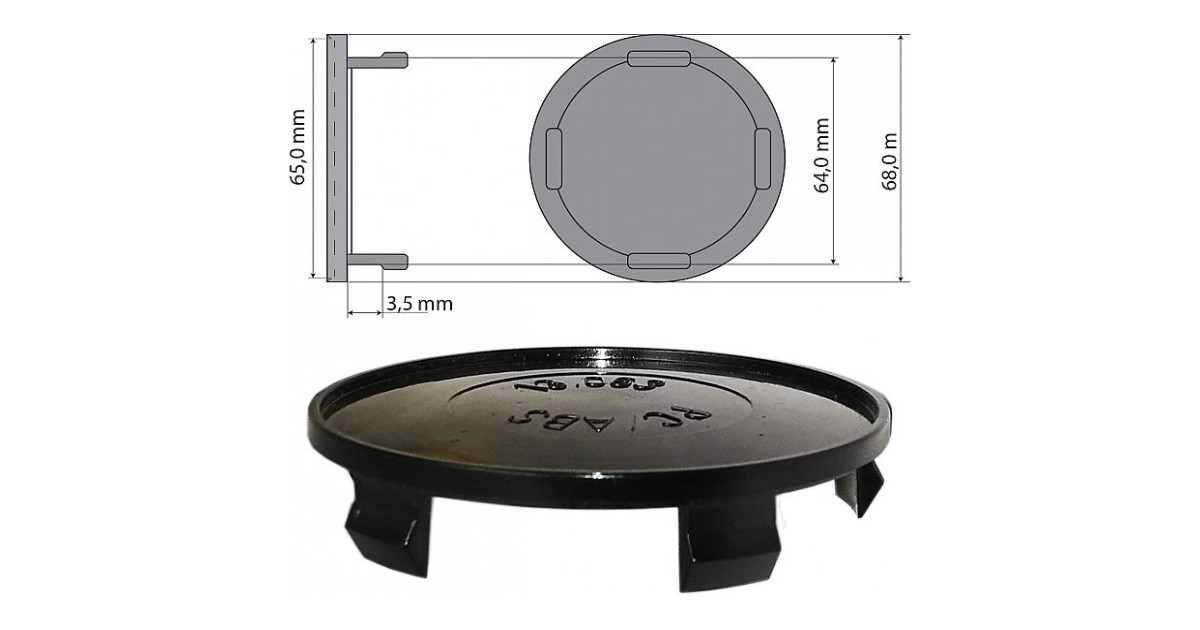 Must plastikkapsel BMW OE-velgedele. logota. Mõõdud 68-65-4.3 mm.