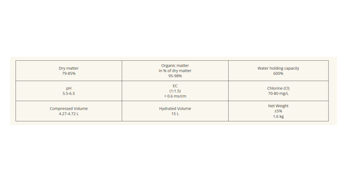 UGro Slab on turbavaba, öko, säästev kookossubstraat, millel on minimaalsed toitained.