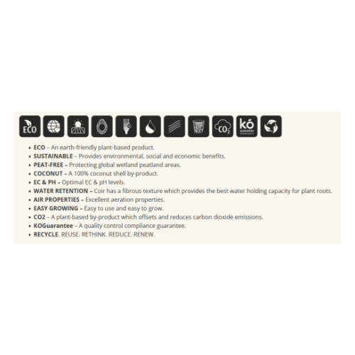 Kasvukott, mis sisaldab kolme kuivatatud ja kokkupressitud kookosstruktuuri (kookoskiud, laastud ja kiud) segu.Kott on töödeldud, et saavutada suurepärane UV-stabiilsus.6,5 liitri puhta veega annab kuni 15 L kookosturvast.Vajadusel kasutage väetist. Hoida jahedas ja kuivas kohas.