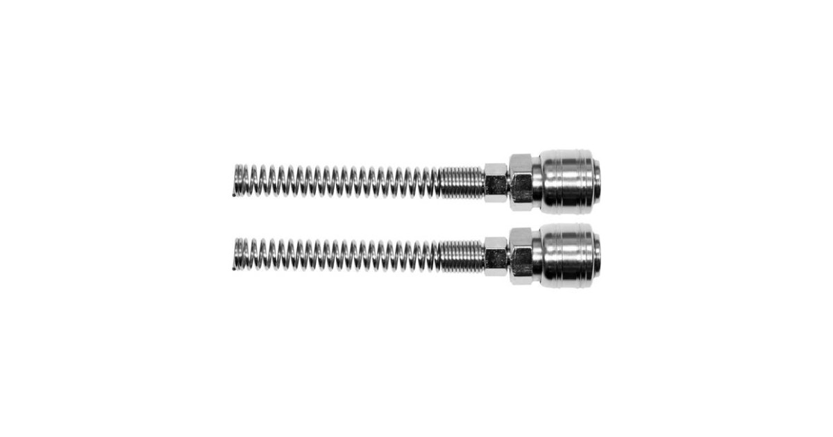 Universaalsed terasest emased kiirühendused 5 x 8 mm vooliku jaoks koos kinnitusmutriga. Need tagavad turvalise ja vastupidava ühenduse. Vedru, mis kaitseb kaablit paindumise eest, igas komplektis kaks tükki.