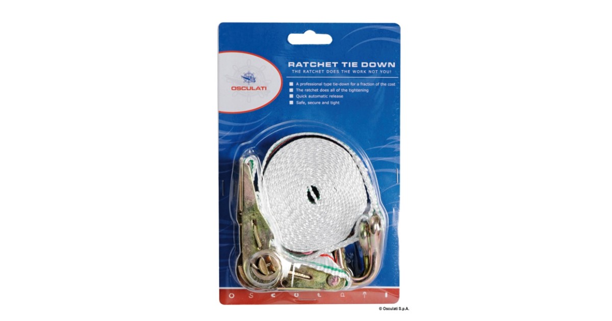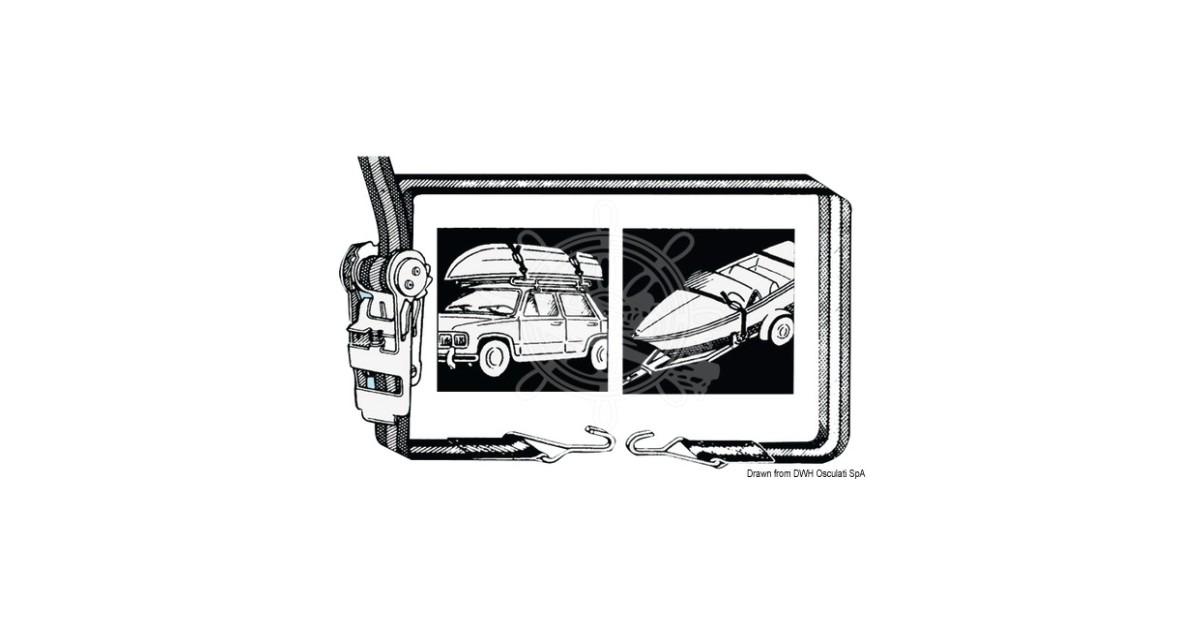Rihm on valmistatud UV-kindlast, värvitud polüestrist ning on varustatud konksu ja pingutiga. Konksud on valmistatud tsingitud terasest ja varustatud piduriga. Rihm sobib hästi paadi kinnitamiseks haagisele. Pikkus: 200 cm; Laius: 25 mm; Katkemistugevus: 500 kg; Reguleeritavus: 60-200 cm.