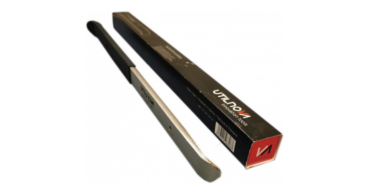 Rehviheebel on valmistatud terasest. osaliselt kaetud kummiga. mis sinna vulkaniseeritud. et tagada parem haarduvus. kaitsta velge vigastuste eest ja vältida heebli libisemist. Heebli otsad on painutatud sellise nurga alla. mis tagab kindla haarde ja parima tööasendi.Tootja: Utilnova. Hispaania.