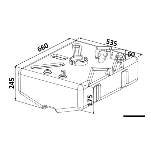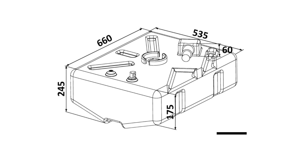 Tugevast plastikust valmistatud ja Euro nõuetele vastav kütusepaak. Ventilatsioon ja tagasivoolutoru. Mahutavus: 63 l. Mõõtmed: 660 x 535 x 245 (+ 60 mm) mm.