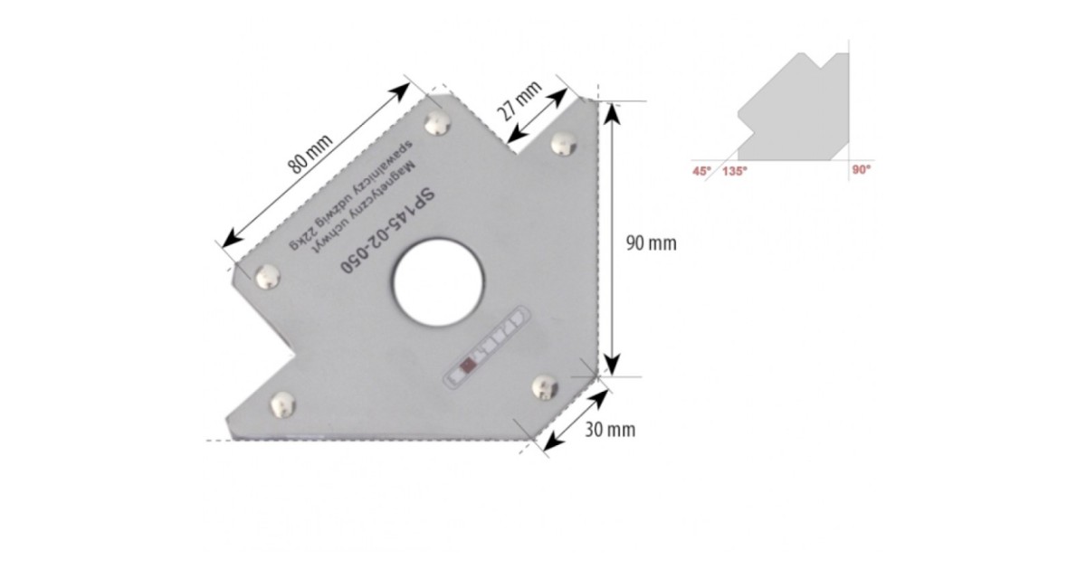 Abiks metallitöödel. Magnetnurk hoiab keevitatavad osad kõvasti kinni ja õige nurga all. Magnetil nurgad 45°, 90° ja 135°. Mõõdud 90x90mm