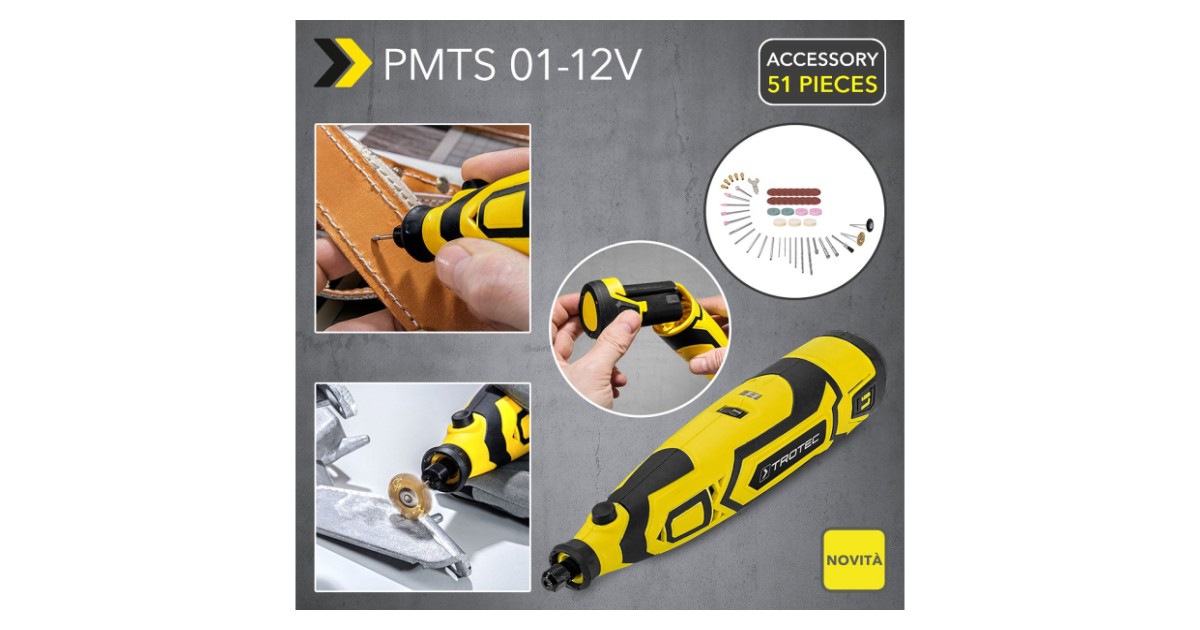 Mini Akuotslihvija Pmts 12V + 51-Os. Tarvikute Komplekt Trotec