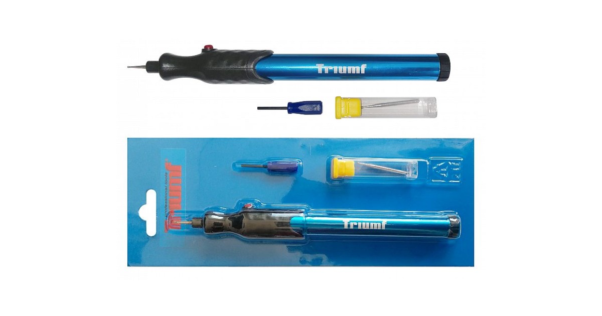 Metalli. klaasi. keraamika. plasti ja muudele siledatele pindadele väiksemate graveeringute tegemiseks. Komplektis kaasas lisaks üks varu teemantotsik. Töötab kahe AA patareiga.