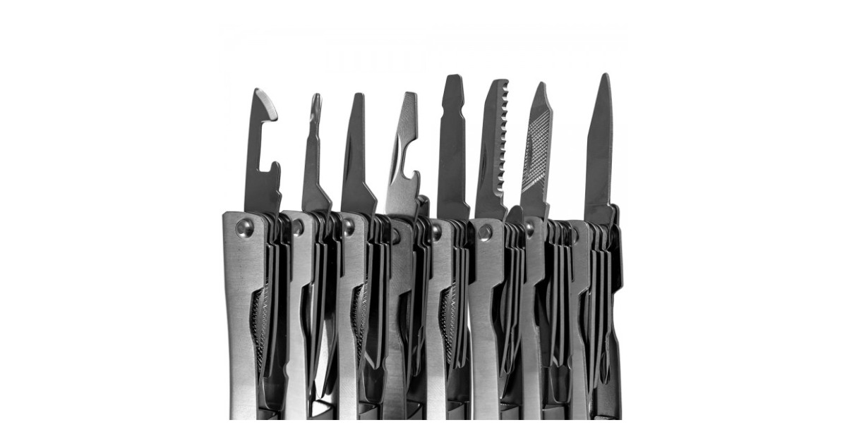 Klassikaline multinuga-tööriist. Vöökotis. Näpitstangid. kruvikeerajad. nuga jne. INOX roostevaba teras. Kogupikkus 105 mm.