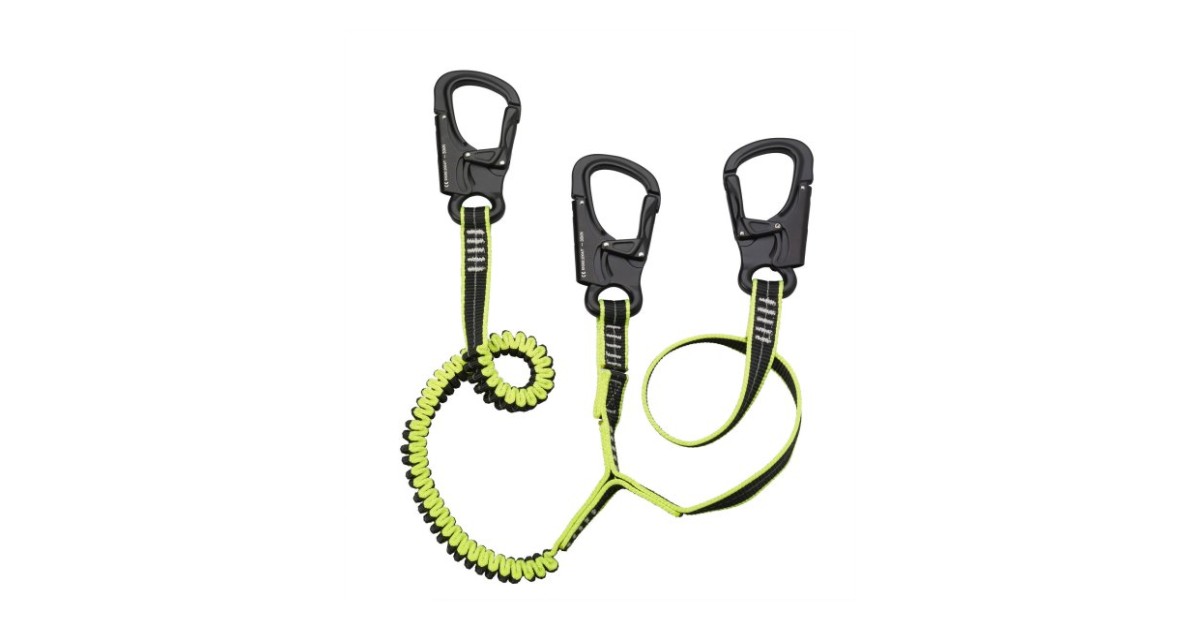 Topeltkinnituspunktiga ohutusvöö 3 alumiiniumist karabiiniga. Tänu helkurniidile on nähtav ka pimedas. Pikkus: 1.5 m, kaal: