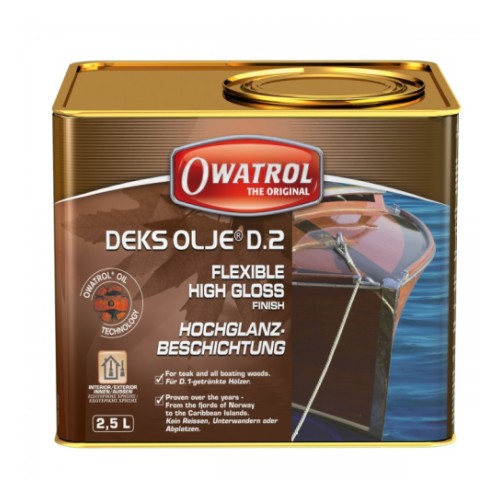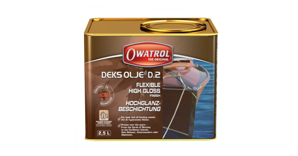 Owatrol D-2 on kõrgläikega ja hea läbipaistvusega õlilakk. Sobib eelkõige troopilistest ja eksootilistest puitmaterjalidest valmistatud pindade katmiseks, tuues välja puitpindade loomuliku ilu ja tekitades pikaajalise kaitsekihi. Kasutusalad: troopilised ja eksootilised puiduliigid: Tiigipuu, Mahagon, Movingui, Ipe, Bangkirai jne. Lisaks okaspuud nagu mänd, kuusk, lehis jne. Paadis on lakk sobilik kasutamiseks vaid ülalpool veeliini. Kattuvus: 15 m²/l. Kasutustemperatuur: + 8 ° C kuni + 35 ° C. Kuivamisaeg ja ülekatmisaeg: 12 h. Lakitava pinna eeltöötluseks tuleks kasutada immutusvahendit Owatrol D-1. Õlilakk Owatrol D-2 on libe ja seega ei sobi kasutamiseks käidavatel pindadel.