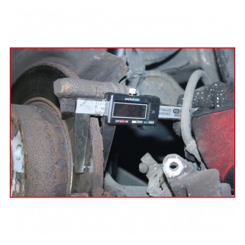 Spetsiaalne mõõtehaara otstes teravikega digitaalne nihik. mida kasutatakse piduriketaste paksuse mõõtmisel. Kogupikkus vaid 160 mm - võtab mõõtes vähe ruumi. Plastkarbis.