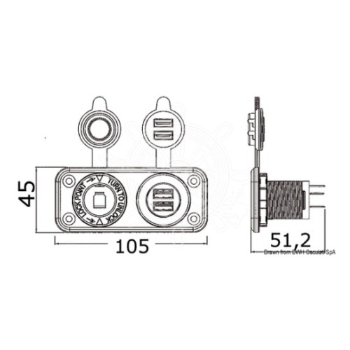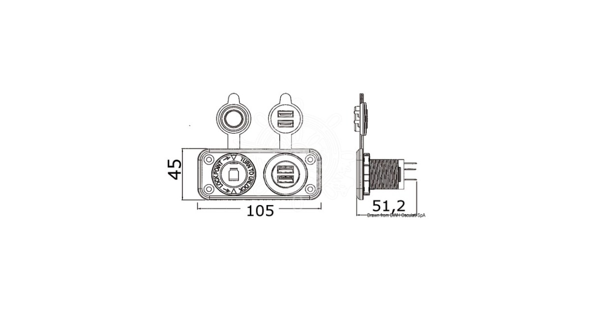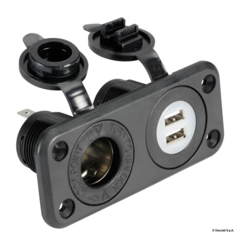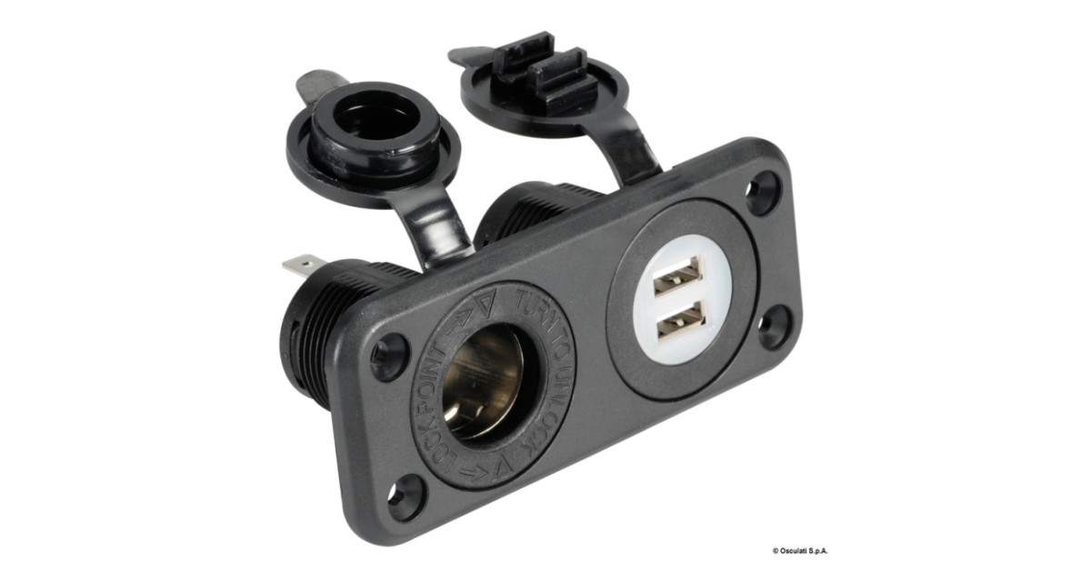 Pistikupesa sigaretisüütajale ja USB ning USB-C pesale. Pistikupesadel on kaitseklapp, mis muudab need veekindlaks.12/24 V sisendpinge, 5 V USB väljundpinge.