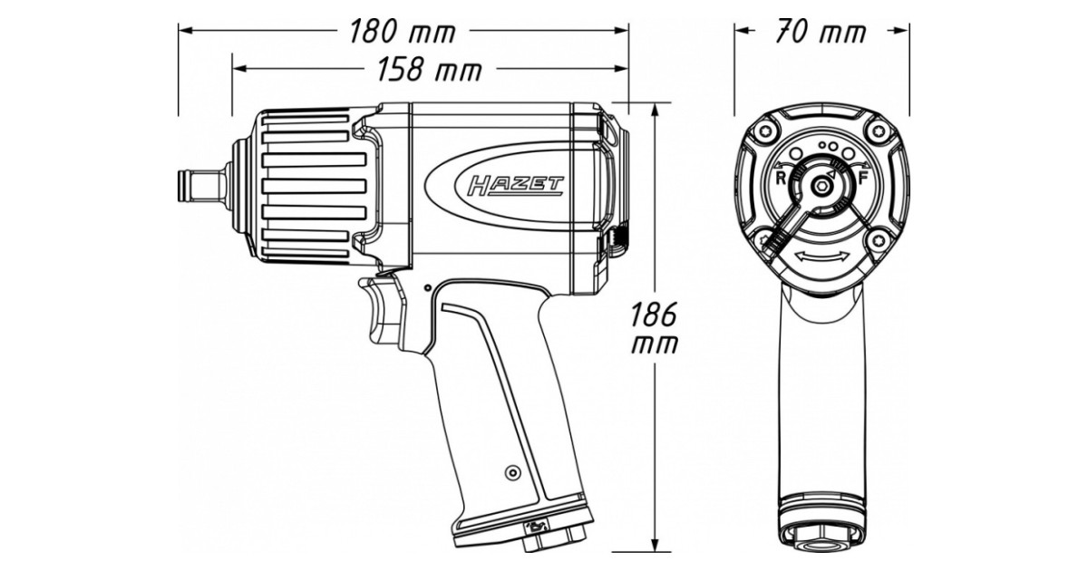 HAZET taskukohane mudel. Tugeva korpusega ja mehhanismiga 1/2" mutrikeeraja HAZET 9012ECO on vastupidava puks-löökmehhanismiga. Max moment lahti keeramisel kuni 1700 Nm. Kasutamiseks auto- ja tehnika remondi ettevõtetes jne. Käepidemes olev termoisolatsioon tagab. et õhuvool seda liigselt ei jahutaks. Õhuvooliku soovitatav siseläbimõõt jõudluse tagamiseks peab olema min 10 mm. Lülitus käib mugavalt tagakaanelt (1 lahti. 3 kinni). Õhuliides 1/4". Töörõhk 6.3 bar. müratase 91.33 db. õhukulu 198 l/min. Kaal 2.15 kg.