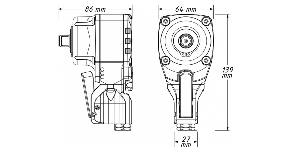 Pneumo Löökmutrikeeraja 90°/Tirrvõti 1/2" 550Nm (Ilma Varreta Versioon) Hazet