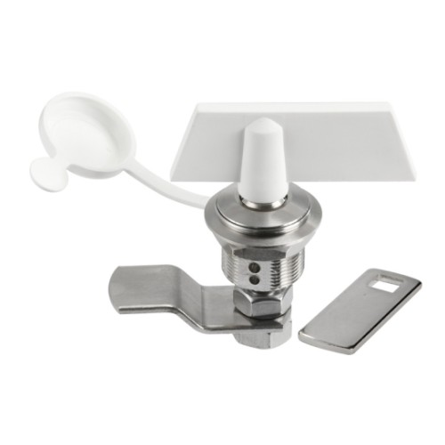 Valmistatud kroomitud messingist, õõnes lukk veekindla korgiga. Mõõdud: Kaela läbimõõt: 20 mm, Paigaldus kaela pikkus: 14 mm, Kangi süvis: 12/33 mm, Pöörlemine: 90°.