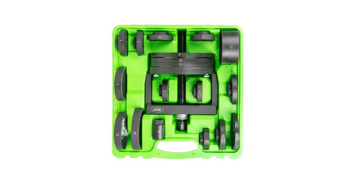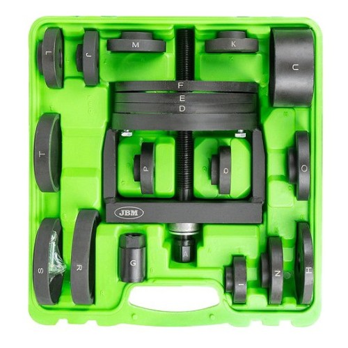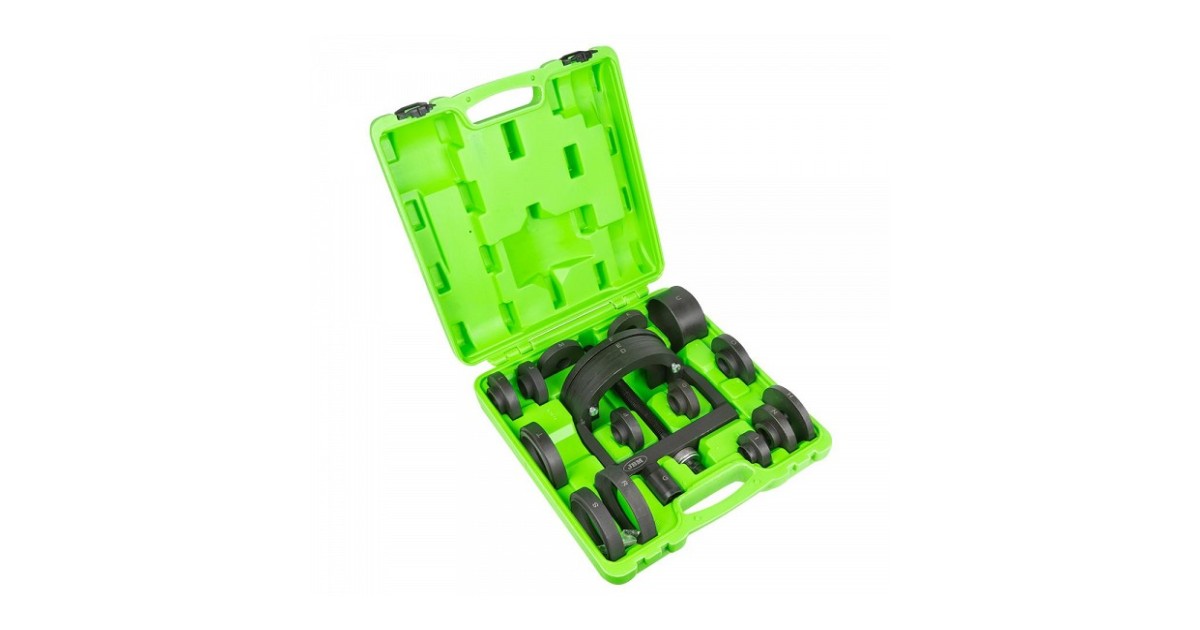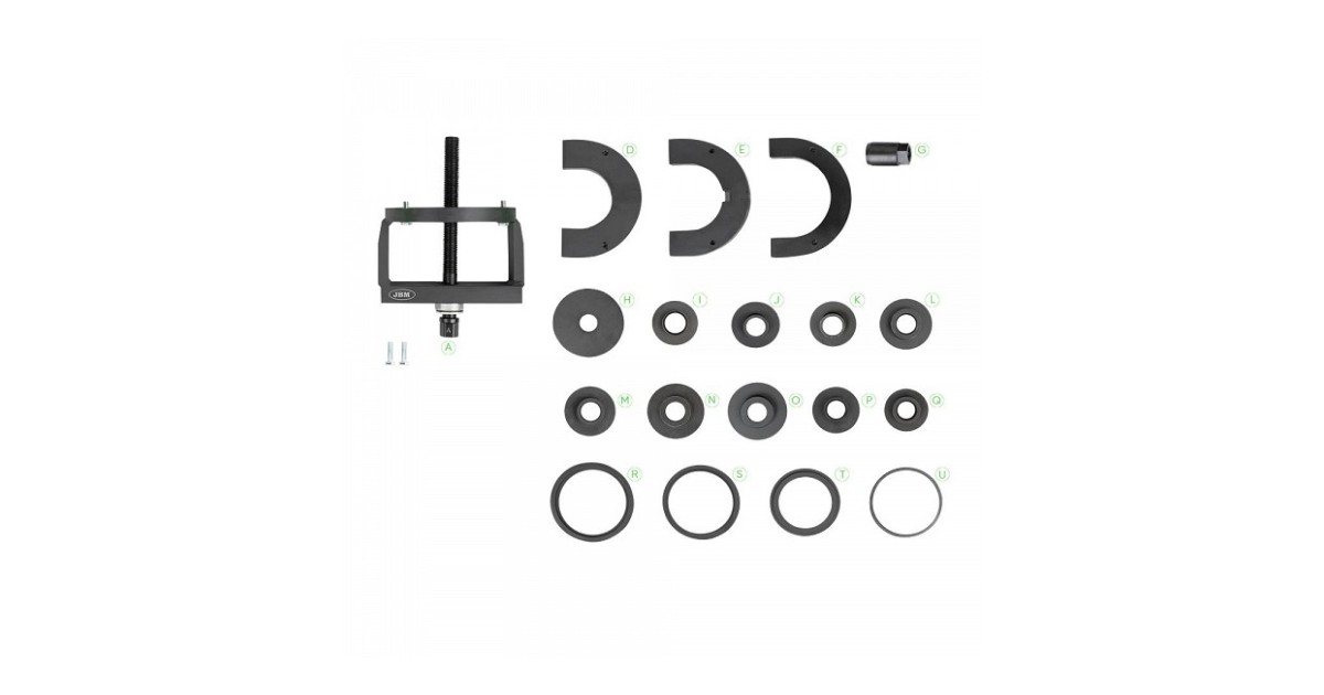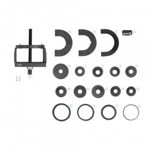 Suurepärase hinna-kvaliteedi suhtega paljukiidetud komplekt. mille abil saab teostada rummu-laagri-puksi töid. Surveadapterid (siseläbimõõt) 80-90-99-120 mm. Tugiraam välisläbimõõt 95 mm. Surveplaadid (välisläbimõõt) 53-58.5-65-66-68-71-73-78-83 mm. Hülssadapterid (sise-välis läbimõõt) 86/109-82/100...