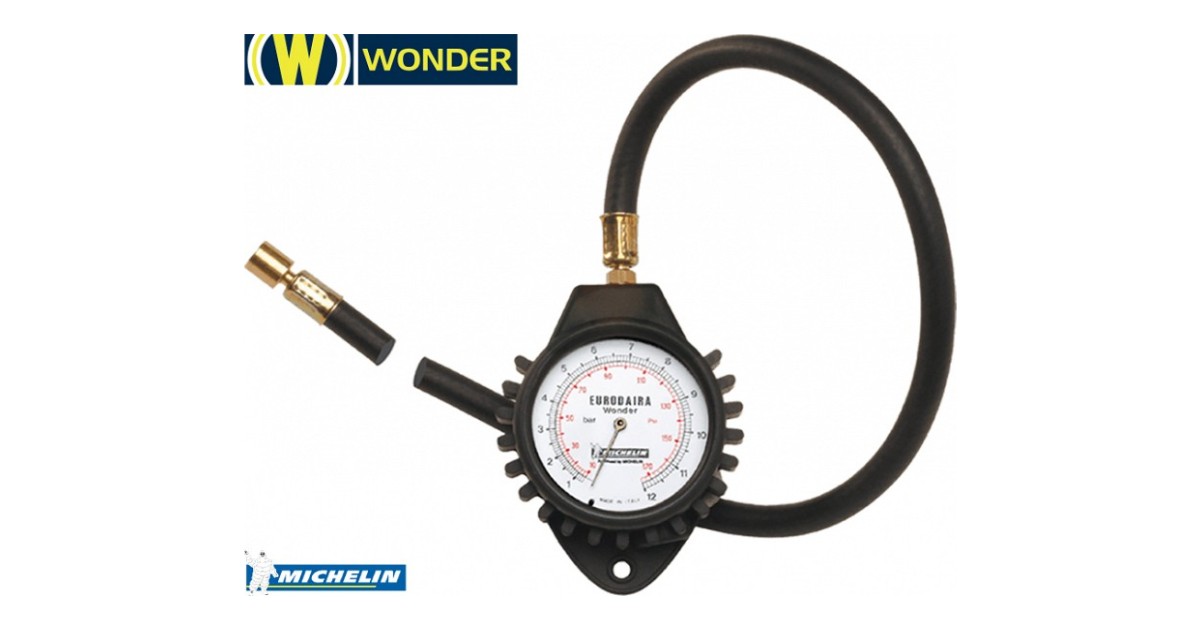 Rehvirõhumanomeeter “EURODAIRA 1900”. 0.7-12 bar.Wonder Eurodaira 1900 on loodud rehvirõhu täppismõõtmiseks. Mõõtetäpsus vastab EU regulatsioonile UNI EN 12645:2014. Mõõteskaala 0.7-12 bar. Vooliku pikkus 0.5 m. Michelini poolt heaks kiidetud. Tootja Wonder. Itaalia.