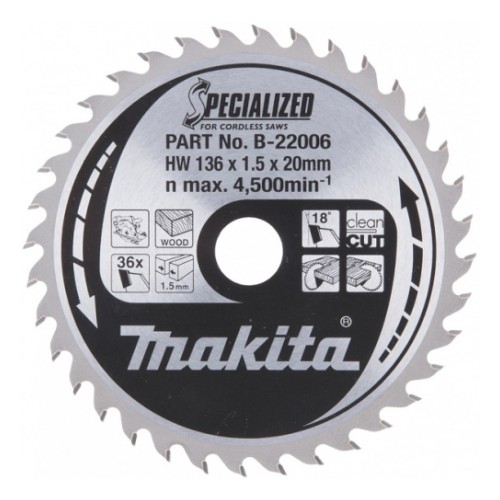Saeketas 136X20X1.5Mm 36T 20° Dss501 Makita