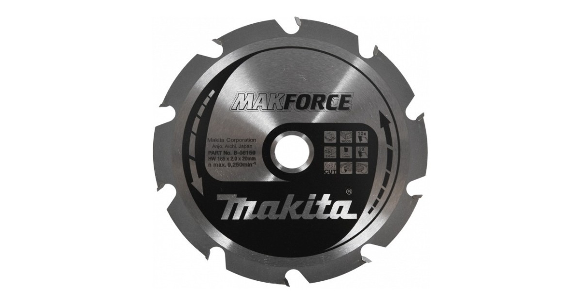 Puidu lõikamiseks. Töökindel kaua vastupidav tera. Kiire kare lõige.Tera läbimõõt 165 mmAva suurus (võlli läbimõõt) 20 mmSaetee 2.0 mmHammaste arv 10Tera nurk 20°Tera tüüp Makforce