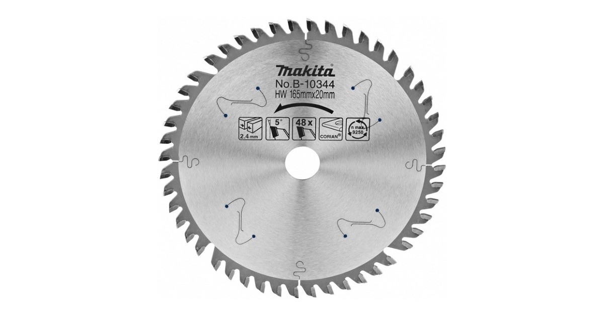 Saeketas 165X20X2.4Mm 48T 5° Sp6000 Clan Cut. Vaikne. Corian Makita