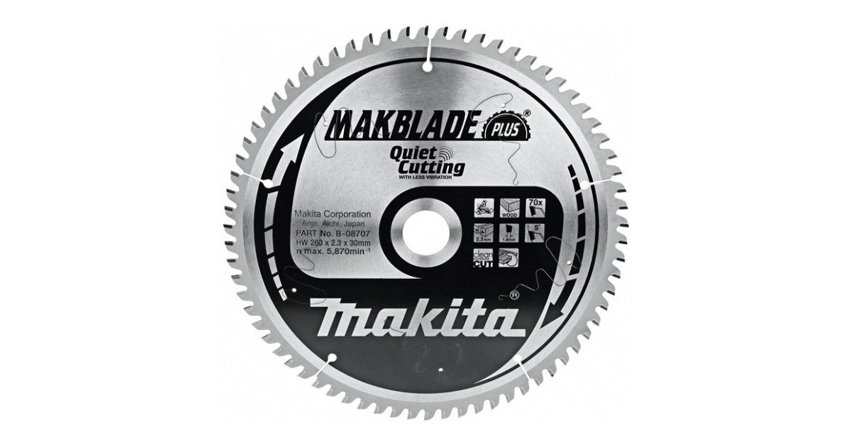 Saeketas 260X30X2.3Mm 70T 5° Risti. Clean Cut. Anti Rust. Low Vibr.. Vaikne Makita