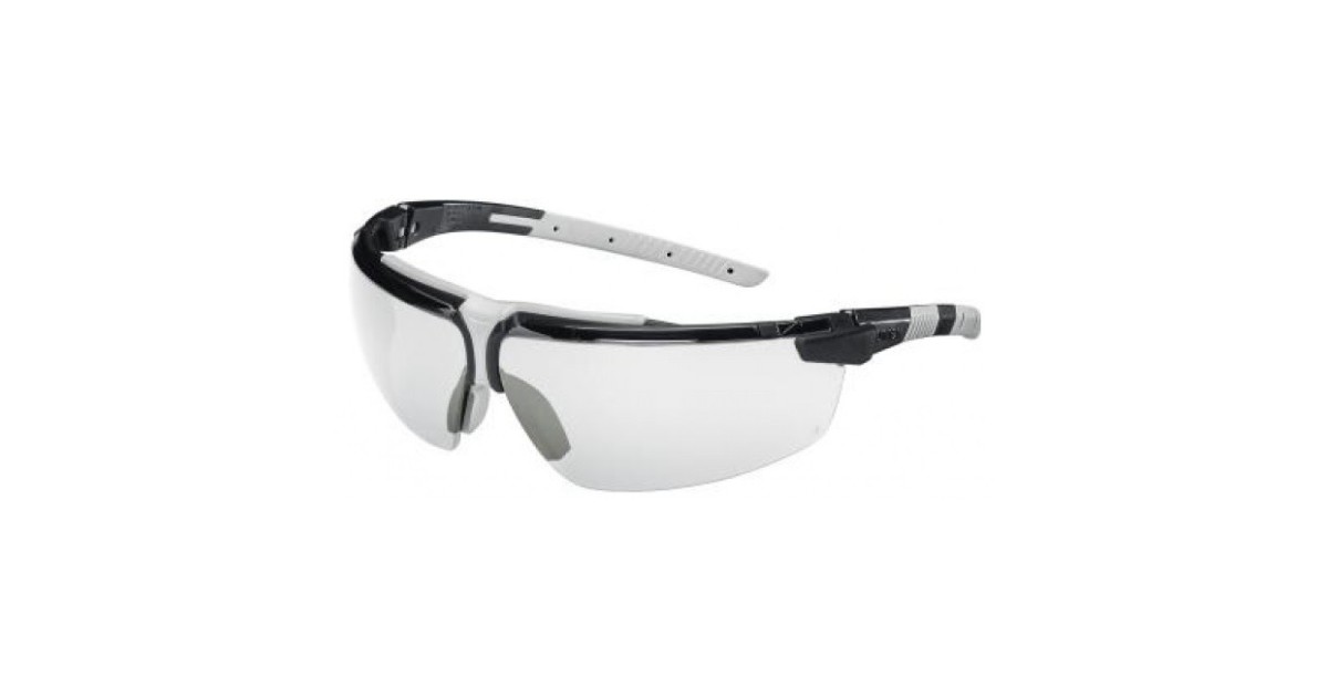 Safety glasses Uvex i-3, clear lens, supravision excellence (anti scratch, anti fog) coating, black/grey. Variable side arms angle, adjustable nose piece.