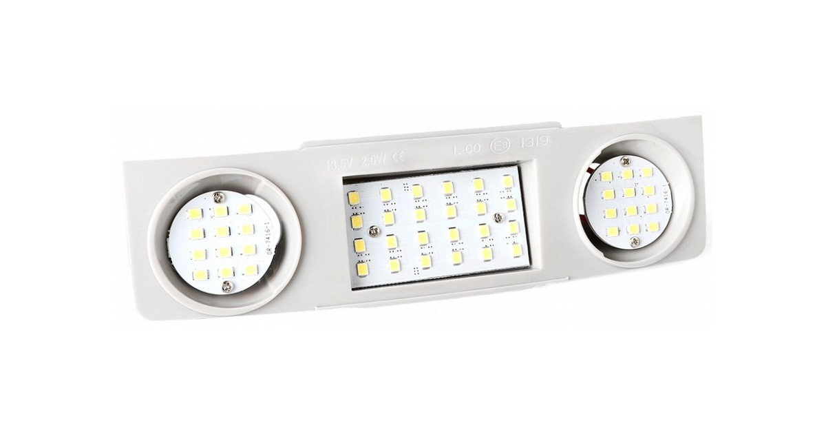 12 V LED eesmise salongitule komplekt. Tules on kasutatud OSRAM Opto Semiconductors LED elemente. LEDi tüüp 48xSMD. Värvus 5000 K. CANBUS veateate eemaldajaga.