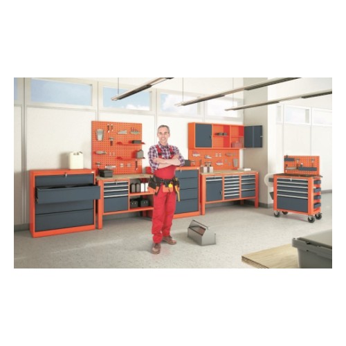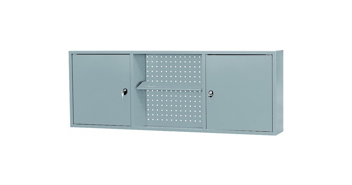 3-osaline tööriistakapp seinale. Mõõdud 1596x250x600 mm. Keskmises osas kaks lahtist riiulit ja perforeeritud tagasein. Kahel kapil perforeeritud sisu konksude kinnitamiseks ja lukustatavad uksed. 10x10 mm nelikantavadega tugevdatud perforeeringsüsteem. Tugevdatud uksed ja seinad.