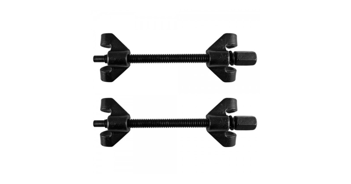 Väga korralikud spiraalvedru kokkusurujad. 2 tk komplektis. Süsinik eriterasest jõukruvi ja käpad. Maksimaalne haare 270 mm. Pappkarbis. NB! Enne kasutamist määri spindel.