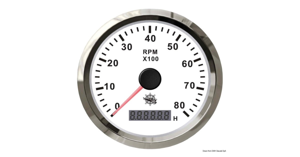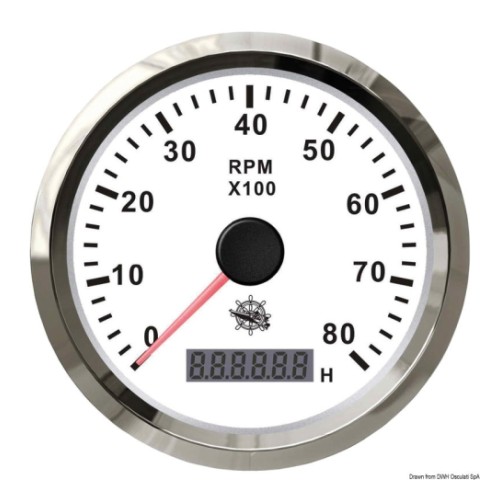 Tahhomeeter, valge/läikiv, taustvalgustus punane/kollane. Skaala: 0-6000 RPM; Toide: 12/24 V; Läbimõõt: 96 mm; Ava läbimõõt: 85 mm; Sügavus: 55 mm.