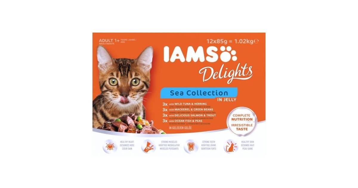 Täissööt (konserv) IAMS Delights täiskasvanutele, erinevad kalad - merekollektsioon tarretises 1,02