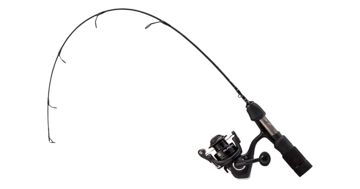 13 Fishing Blackout jääpüügi kombo. Poleeritud roostevabast terasest tamiili juhikud pakuvad jääl olles strateegilist kergust. Mugava haarde tagamiseks on sellel konksuhoidja ja EVA materjalist käepide.