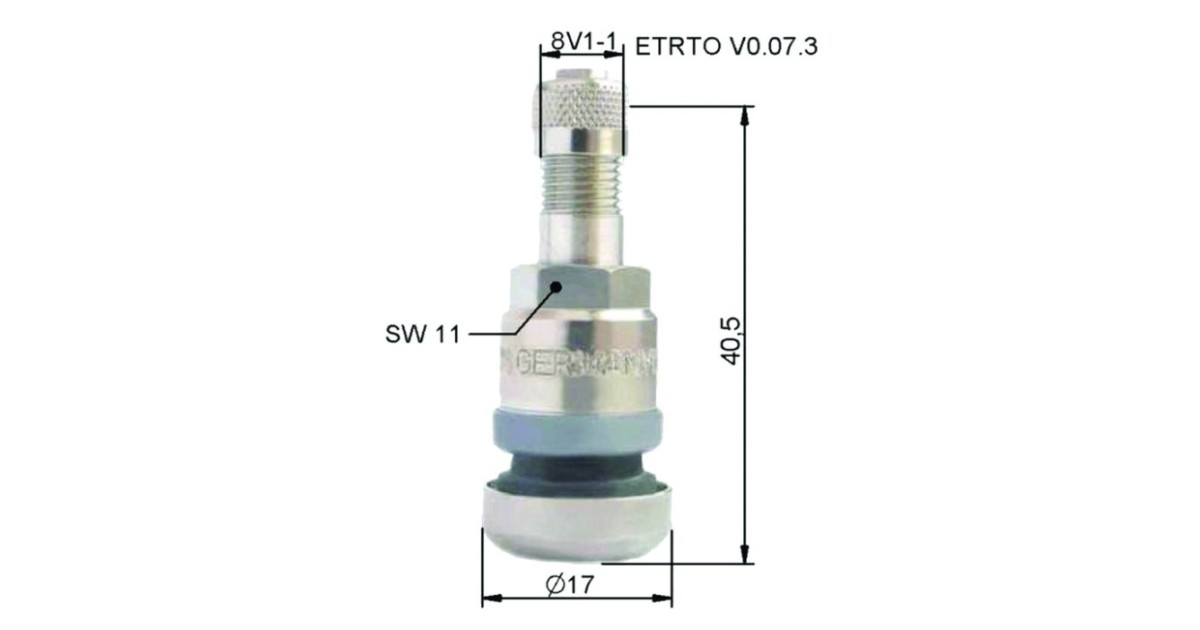 Metallventiil kaubikutele. auto-ja haagissuvilatele. kergveokitele. Max rõhk 14 bar. temperatuuritaluvus kuni 150ºC. Pingutusmoment 4-6 Nm. Kumer ventiilipõhi ja plastiktihend valuvelje kaitseks.