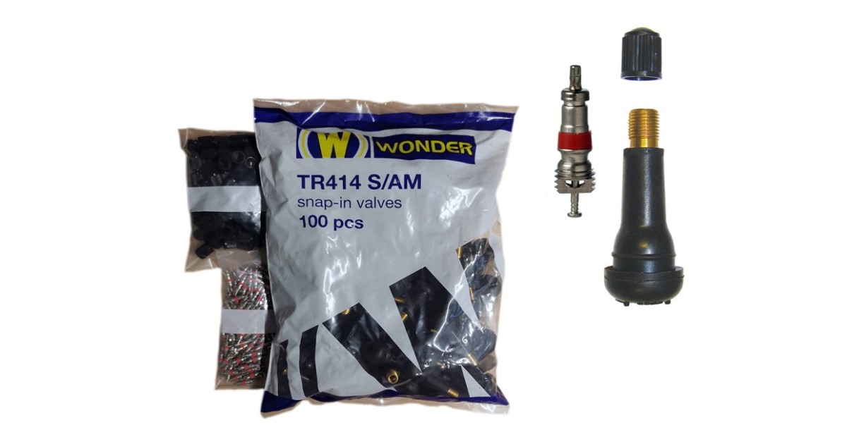 Wonder AM-seeria TR414 TL-kummiventiilid sõiduautole. osadena. 100 tk. 11.3 mm ventiiliavale. Kogupikkus 48.5 mm. veljest väljaulatuva osa pikkus 41 mm. Max rõhk 4.5 bar. Sõidukiirusele kuni 210 km/h. Üle selle kiiruse kasuta teras- või alumiiniumventiile. Ventiilid on komplekteeritud. Tootja Wonder. Itaalia. 100 tk.