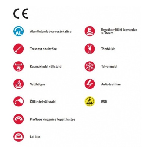Aastaringne kasutus karmis keskkonnas. laia liistuga. kuuma- ja õlikindel välistald. antistaatilised omadused. kinnine saapa keel. polsterdatud saapasäär. hingav sisetald. tehnilisest fliisist vooder. tõmbeaasad. tõmblukk. vetthülgav. kahekordsed lööki leevendavad alad. vastab standardile IEC 61340-...