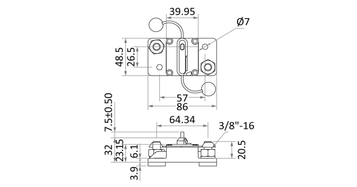 Veekindel termaalkaitse ankruvintsidele, vöörimootoritele. Lähtestatav spetsaalse hoova abil. Valmistatud vastavalt USA standarditele SAE J1171 / SAE J1625. Lubatud pinge: max 48 V, töötemperatuur: -32° + 92°. 3/8" elektriklemmid, pinge 50 A.