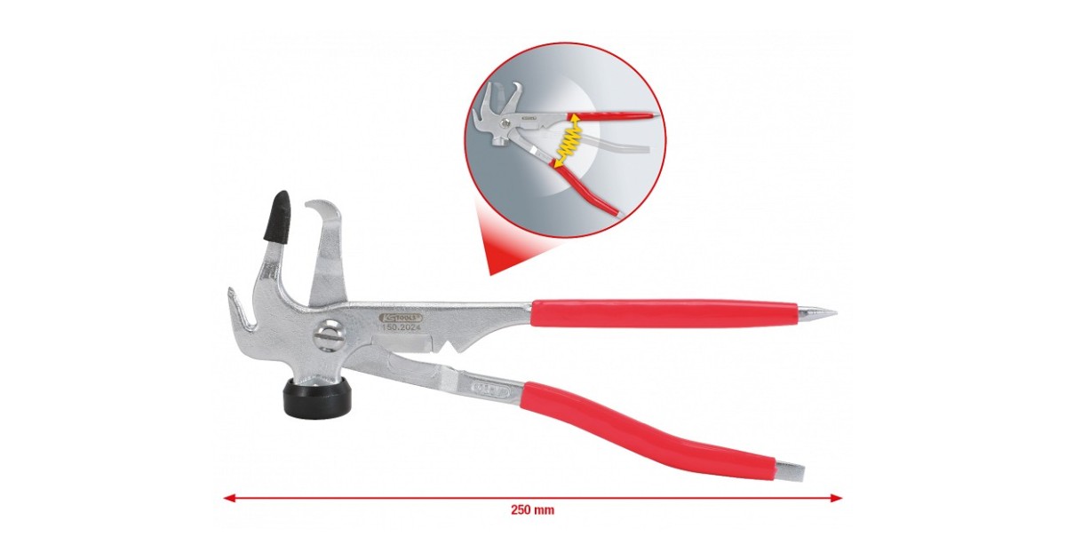 Kaalulõikur. Plastikuga kaetud vasaraosa. Plastikuga kaetud eemaldaja. CrV eriterasest. Iseavanevad. Pidemeosa kaetud libisemiskindla kattega. Pikkus 250 mm.