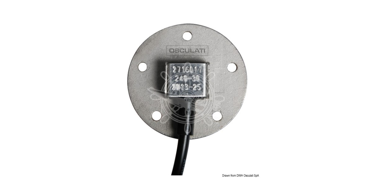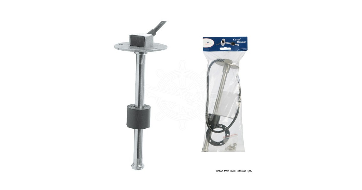Vertikaalne paagi taseme andur, ideaalne kas kütusele või veele, 5-auguga kinnitus flans; 12/24 V; Pikkus- 25 cm; Takistus 240 - 33 Ω; Sobib näidikutele: Teleflex, Aqua Meter, Vetus, S. Giorgio Sein (Veglia), Beede, Medallion, Datcom, 27.160.00, Taiwan-Wena ja Osculati mudelitele.