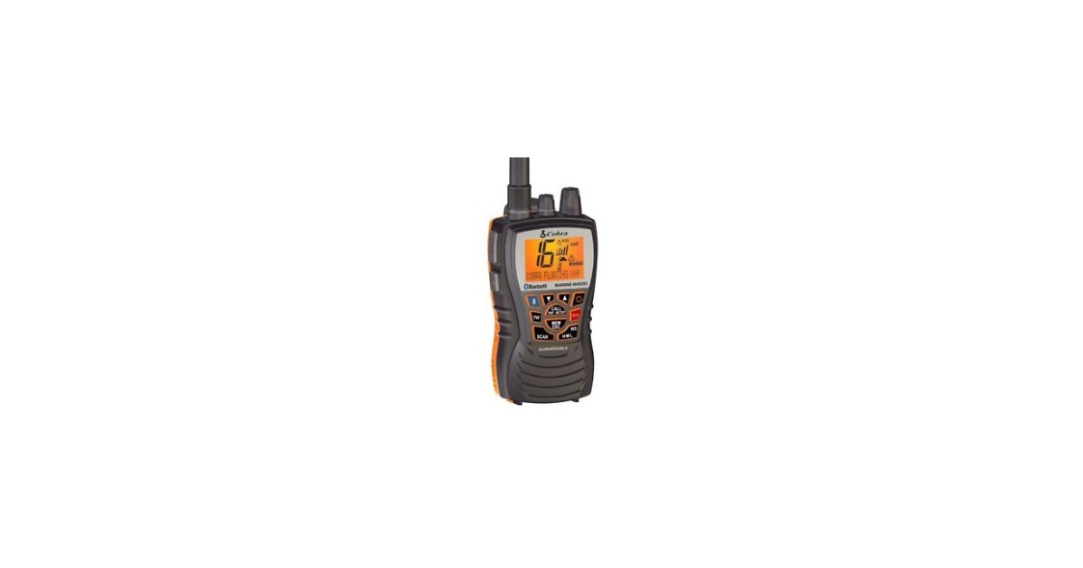 Cobra Marine raadio MR HH500 Bluetooth. Sellel raadiosaatjal on Bluetooth funktsiooniga mobiiltelefoni liides. Toodet saab kasutada kui standardset VHF või mobiilset telefoni. Tehnilised andmed: Veekindel IPX7 ja ujuv, Võimsus 6 W, Kõik rahvusvahelised kanalid, "Rewind" funktsioon viimaste kõnede kuulamiseks, eksklusiivne BURP funktsioon kõlarist liigse vee eemaldamiseks, Piiramatu kanalite programmeerimine, 16 + 2 valitud kanalid, välise mikrofoni / kõlari liides, Key Lock, et vältida juhuslikku kasutamist, Taustamüra summutamine. Komplektis: 1000 mAh liitium aku + 220 V laualaadija + 12 V laadija (sigaretisüütaja) + antenn.